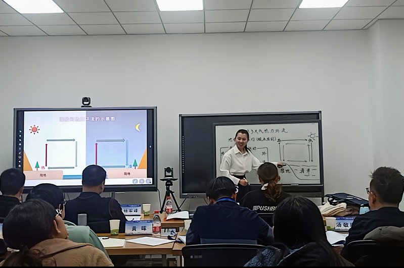 决赛分模拟授课和实习话感想两个环节。刘薇同学扎实的专业知识、天生的亲和力、优雅的教姿教态、较强的课堂掌控能力给各位评委留下了深刻印象。模拟授课环节,刘薇同学引入绿色空调——伊朗风塔、海边拍照等与日常生活密切联系的案例,使得抽象、复杂的热力环流通俗易懂,真正阐释了地理学是生活中的地理。虽未参加教育实习,但刘薇同学比照自我受教育的过程,对教师、教育有自己的理解:作为一名老师,一定要注重与学生的对话,让学生成为课堂的主体,调动学生的积极性,营造轻松愉悦的学习环境;教师最幸福的事就是陪伴,与学生们共同进步、一起成长!她希望自己级成为一名不负人民、德才兼备的“四有”好老师!