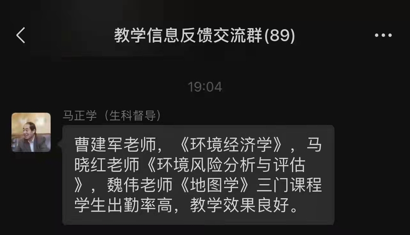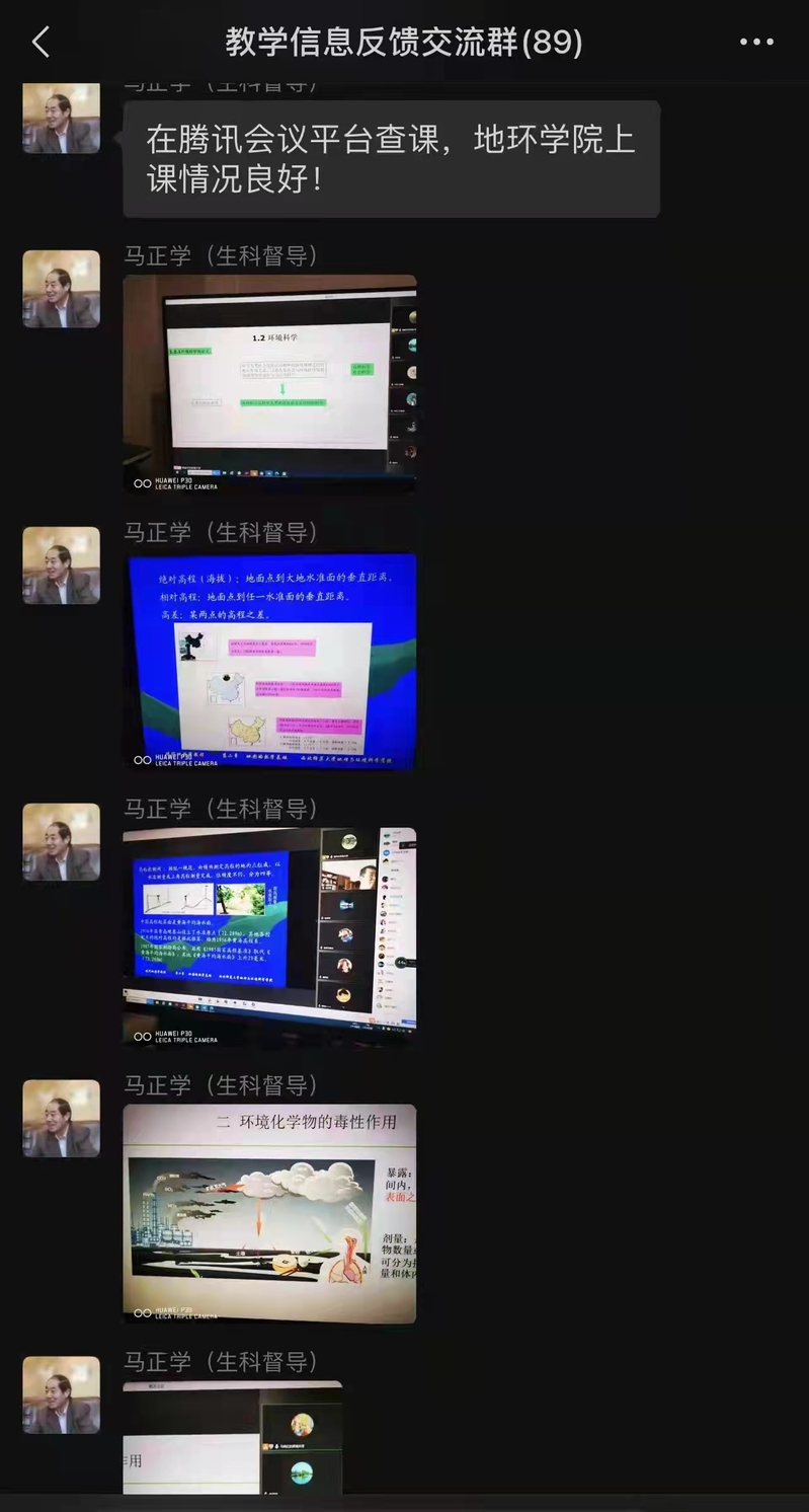 学院教学督导组成员赵军、巨天珍、张松林、辛存林、胡梦珺、张学斌等6位老师也积极参与督导检查,确保线上教学有序开展。学校教学督导马正学老师在网上巡课后反馈,“必赢nn699net学生到课率高,教学效果良好”。学院领导在走访学生宿舍时,同学们表示“和课堂上面对面教学相比,线上课程我们和老师只能屏幕对屏幕,虽然不能和老师见面,但老师对于课程的准备、要求、课后的作业与答疑做了详尽的安排,保障了我们课程的学习进度和程度,授课和学习的效果并没有受到太大的影响,我们一起努力,共克时艰。”地理科学系2021级同学纷纷表示。